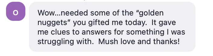 90-minute deep-dive sessions where you get golden nuggets of wisdom and profound insights that our students call "priceless" and "life-changing" - more on that below.